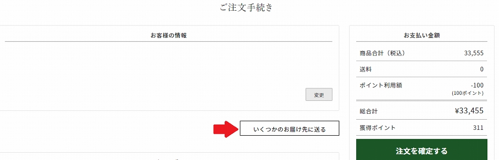Step1.ご注文手続き画面から ” いくつかのお届け先におくる”タブを選択します。