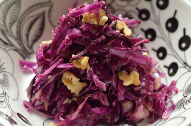 1.紫キャベツは芯を除いて千切りにし、塩をふってもみ込み、そのまま30分おく。