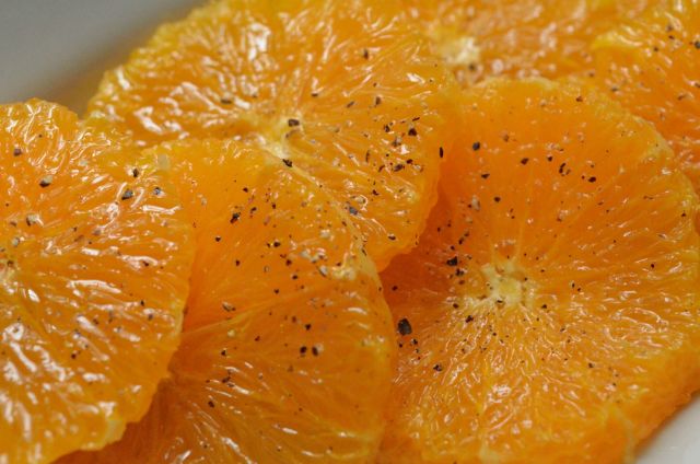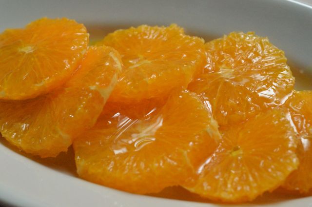 1.オレンジは皮をむき(白いワタの部分もむく)、輪切りにする。
