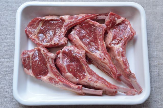 骨付きラム肉に塩こしょうをし、レモンEXVオリーブオイルを揉み込んで冷蔵庫に一晩おく。
